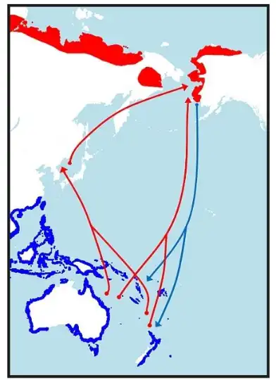 In summer, godwits raise families in the Arctic. When it’s winter in the Northern Hemisphere, they fly south – sometimes as far as Australia or New Zealand. The map above shows their flight patterns.