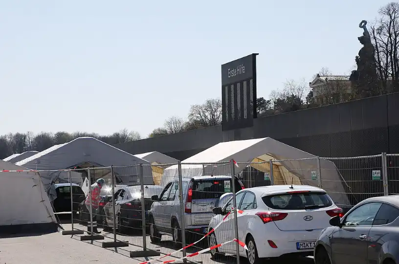 Around the world, most countries haven’t been prepared to do enough tests. Germany can now test 500,000 people a week. The US has only recently tested 1 million people in total. Above, a drive-through testing station in Germany.