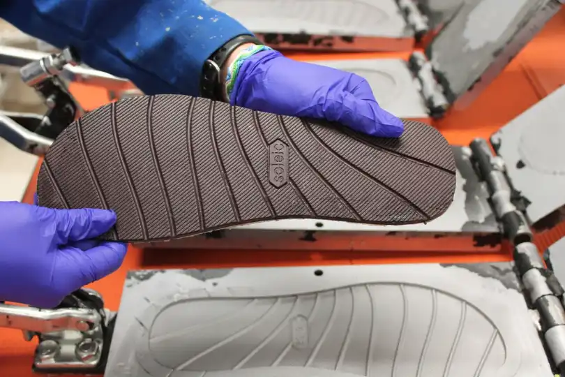 The scientists use algae paste to make an algae-based oil. It wasn’t easy, but after hundreds of tries, the scientists figured out a way of turning the algae oil into a polyurethane that’s good enough to be used in shoes (above).